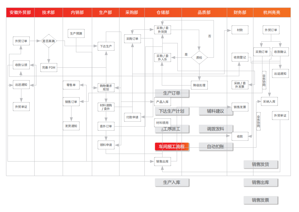 • 通过制造管理完成生产计划、车间派工、完工管理,并实现分项成本管理与分析。