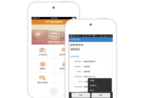 - 随时随地进行U8+业务审批,实时控制经营风险,大幅提升运营效率;移动审批单据覆盖包括采购、销售、库存、应收付、进出口、网报、合同、预算、HR、CRM等。