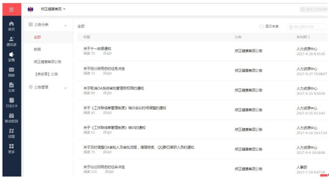 面对修正健康集团的现状,友空间搭建了统一的企业门户,并通过审批、公告、文库以及多种社交协同方式,成功帮助其建立和完善了科学、全面的信息化业务协同管控体系,提升了企业运行效率,降低了管理成本。