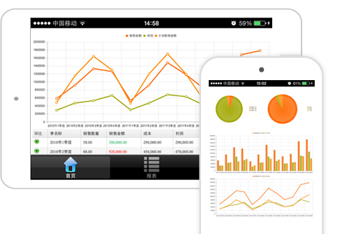 - 面向企业决策层管理人员,提供随时随地的商业分析,实时监控企业运营状况,预警信息及时准确地推送到管理人员的移动端,展示图表可添加文字或语音批注并通过邮件或微信分享给其他人,实现移动分析与社交媒体的无缝衔接,实时掌控企业经营。